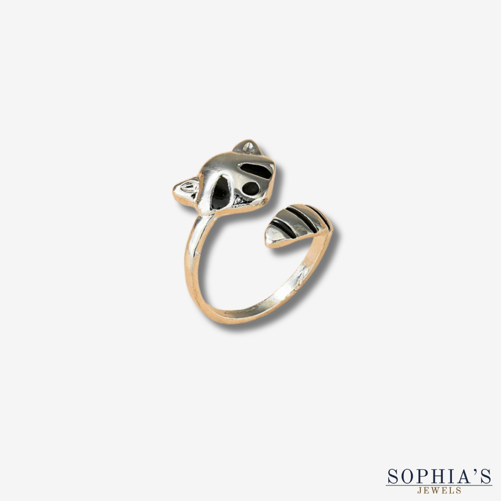 Crafted in sterling silver, this adjustable ring features an adorable raccoon wrapped around your finger — a perfect blend of elegance and whimsy. Its detailed design and high-quality finish make it a standout piece for everyday wear or gifting.