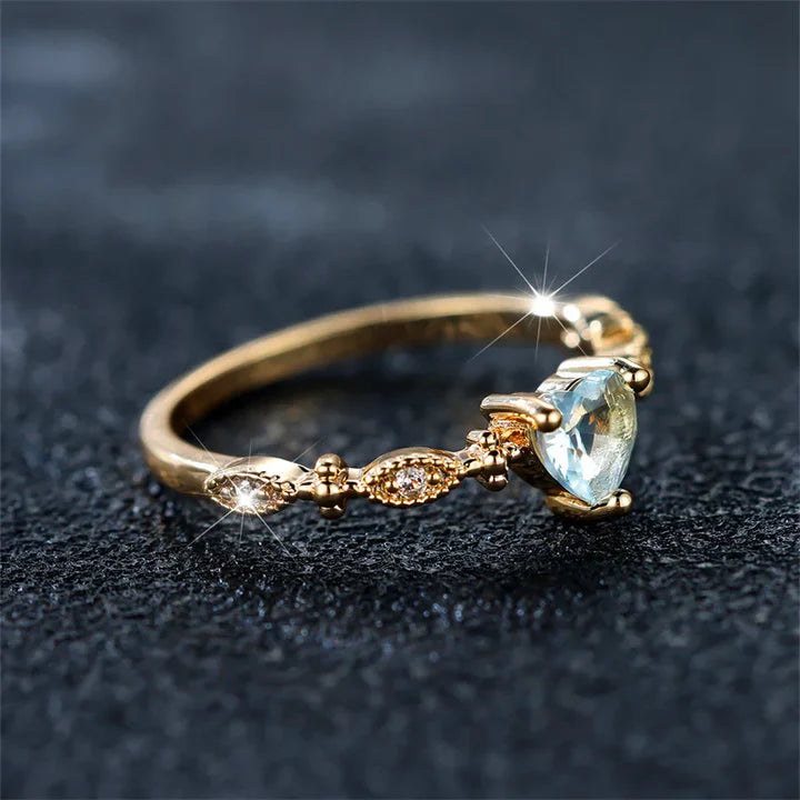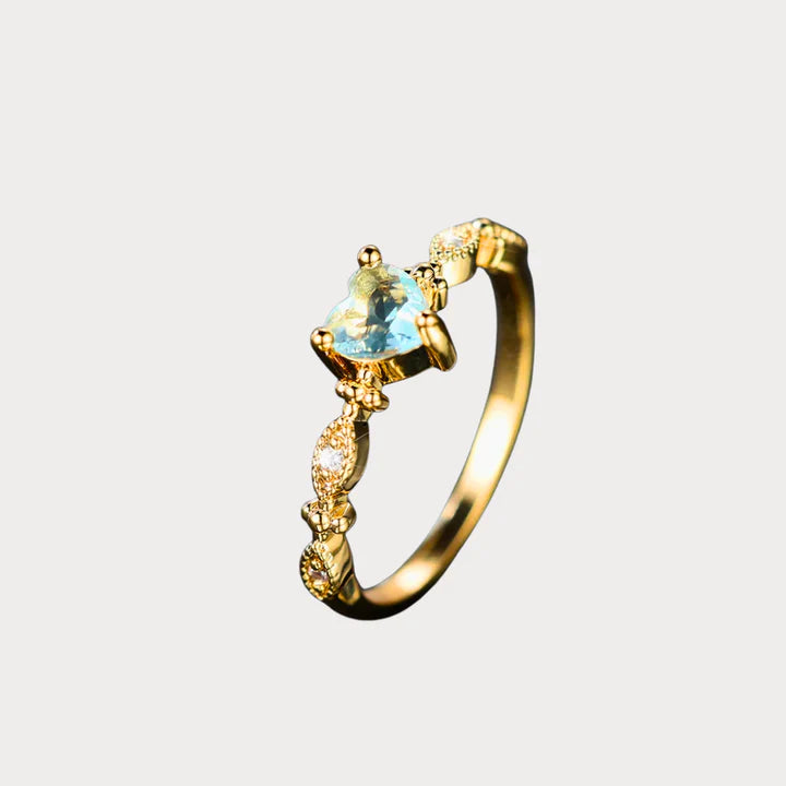 The Amber Song ring features a golden heart nestled in a sleek, polished band. Radiating with quiet warmth and charm, it’s a sweet reminder of love in its purest form.