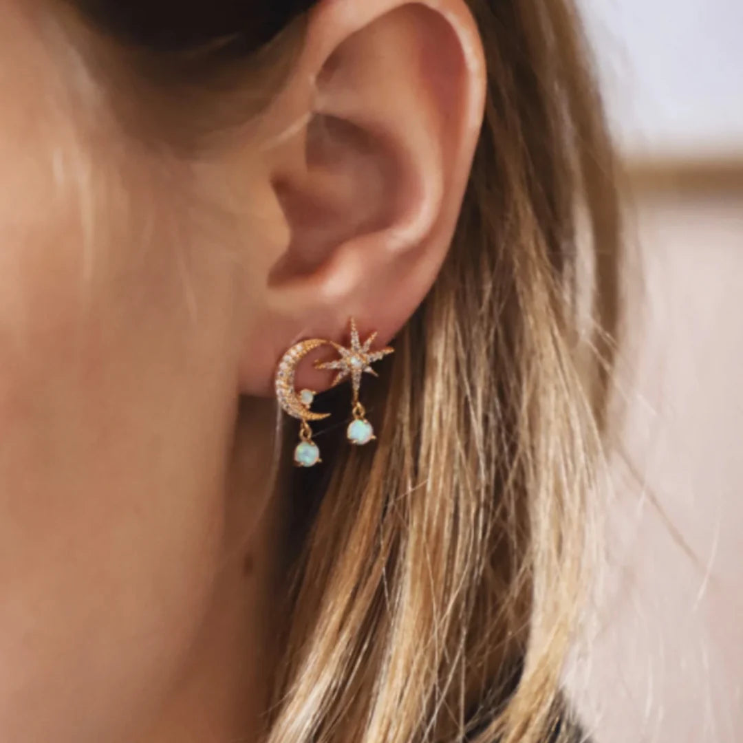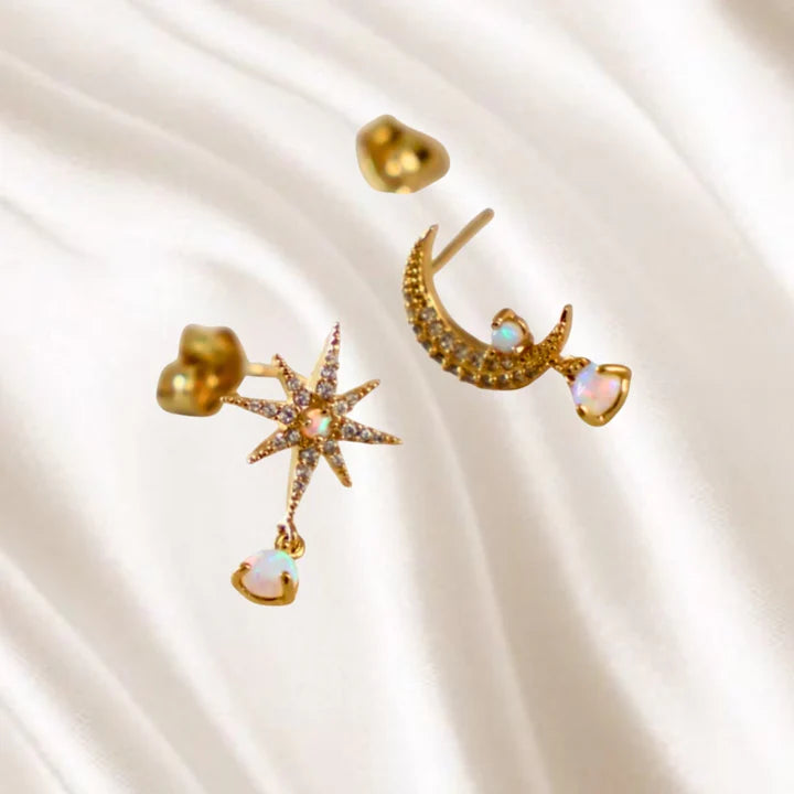 Antique Bloom | Gold & Opal Moon & Star Earrings