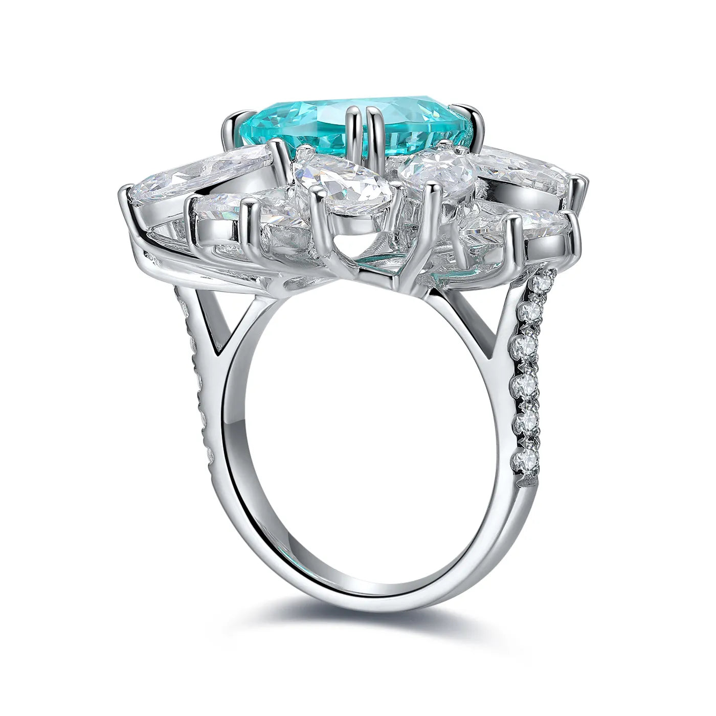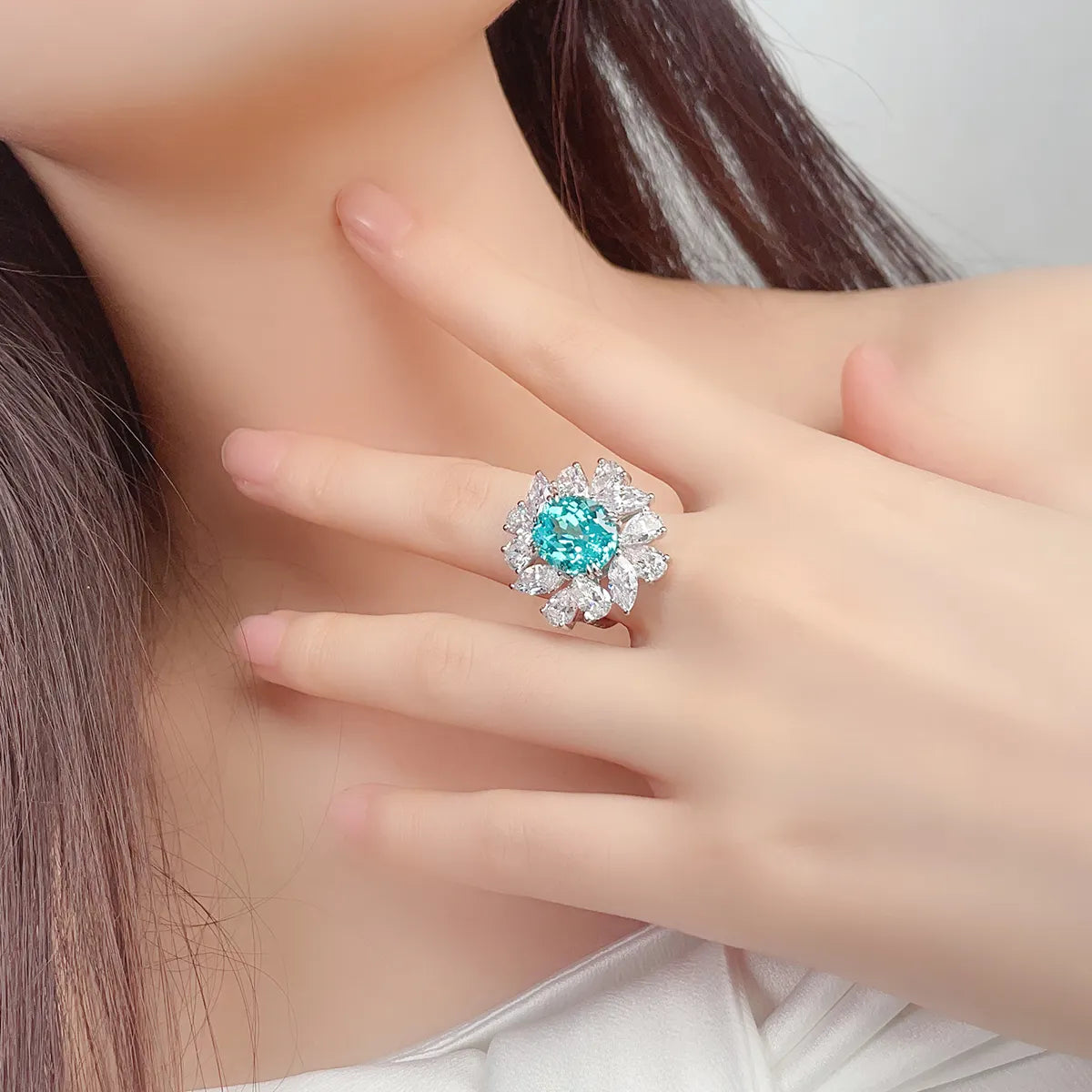 Blooming with elegance, this luxurious ring features a delicate flower design centered around a radiant aquamarine stone—capturing the beauty of nature in every detail.