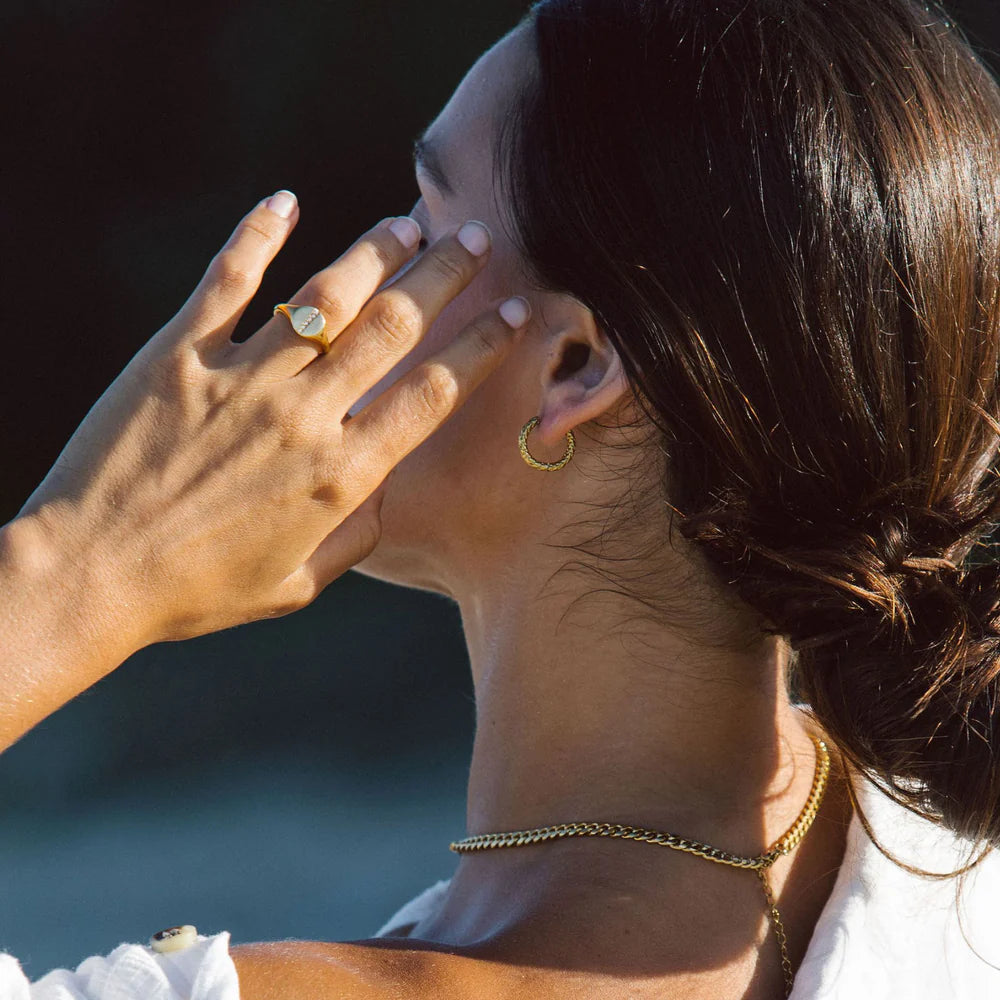Add effortless charm to your jewelry lineup with the Aurora Textured Hoops. Featuring a subtly hammered finish, these classic gold earrings strike the perfect balance between elegance and edge.
