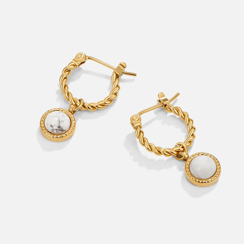A bold twist on a classic favorite. The Aventurine Hoops feature a unique twisted design in a rich 18k gold finish — effortlessly elevating any look from simple to striking. Made with waterproof stainless steel, they're built to shine without ever fading.
