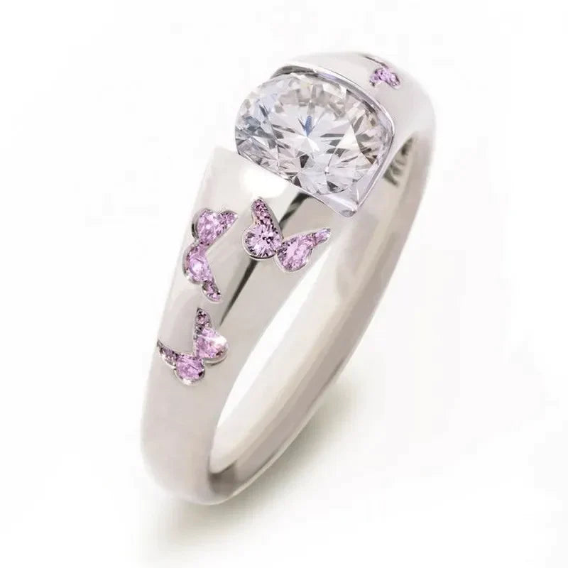 Graceful and radiant, this vintage-inspired ring features a delicate butterfly adorned with shimmering purple zirconia. Its elegant design and timeless charm make it a perfect piece for adding a touch of magic to your everyday look.